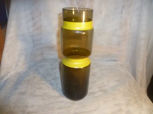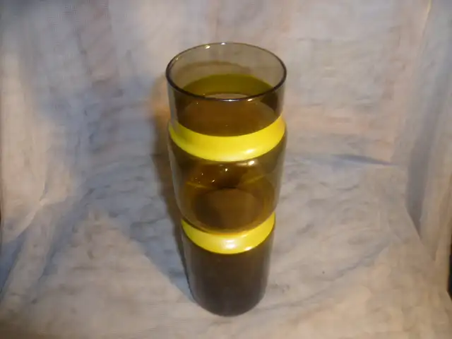 Finnland Skandinavien Glasvase Space um 1960 Waldgrün mit ocker
