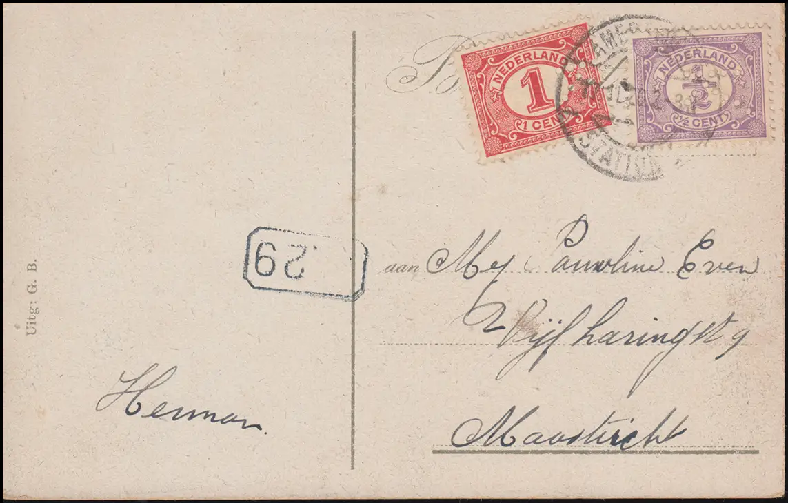 Perçage/Perfin K à 49+50 chiffres sur AK Amersfoort, AMSTERDAM 17.11.22