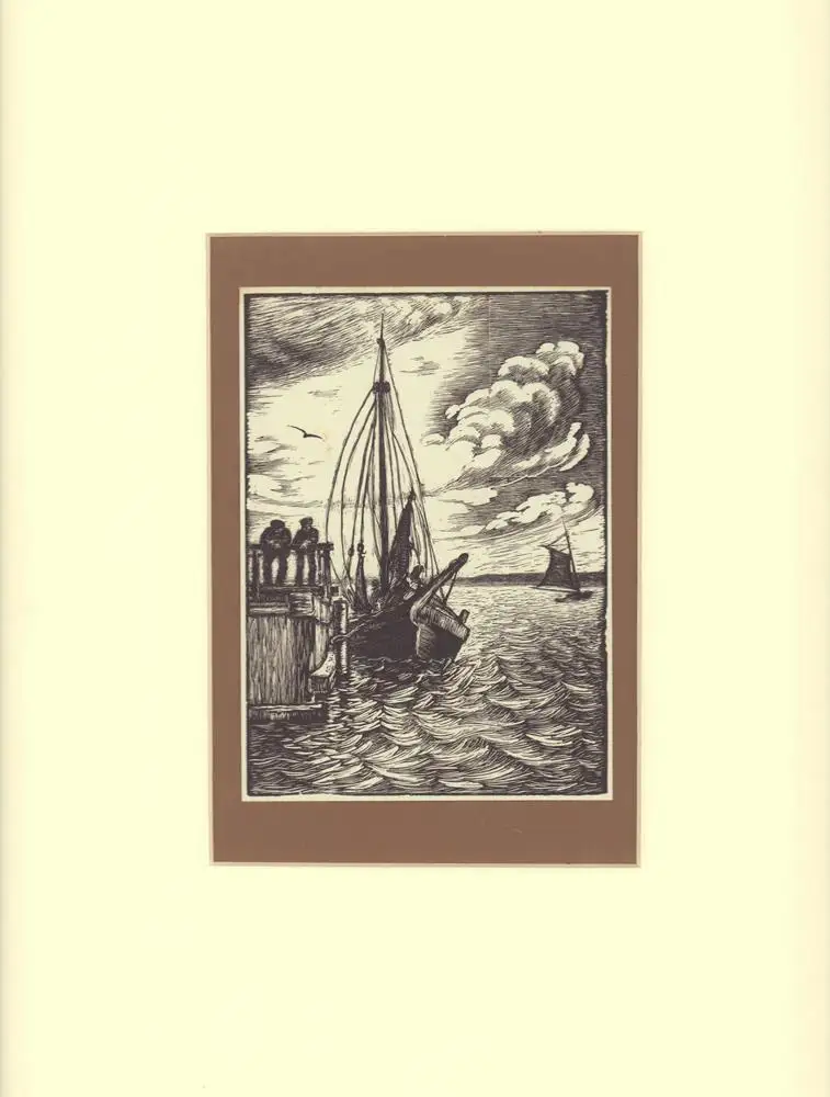 Fischkutter. Original-Holzschnitt, Hoberg, Reinhold