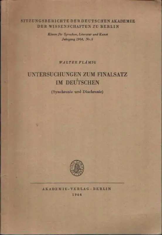 Flämig, Walter; Untersuchungen zum Finalsatz im Deutschen; Synchronie; Diachronie; Sprachwissenschaft; Fachschulbücher; Finalsatz