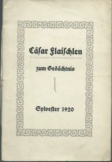 Flaischlen, Cäsar (1864-1920). - Geißer: Cäsar Flaischlen zum Gedächtnis. Sylvester 1920. Worte gesprochen an seinem Grabe zu Stuttgart von Stadtpfarrer Geißer=Künzelsau.