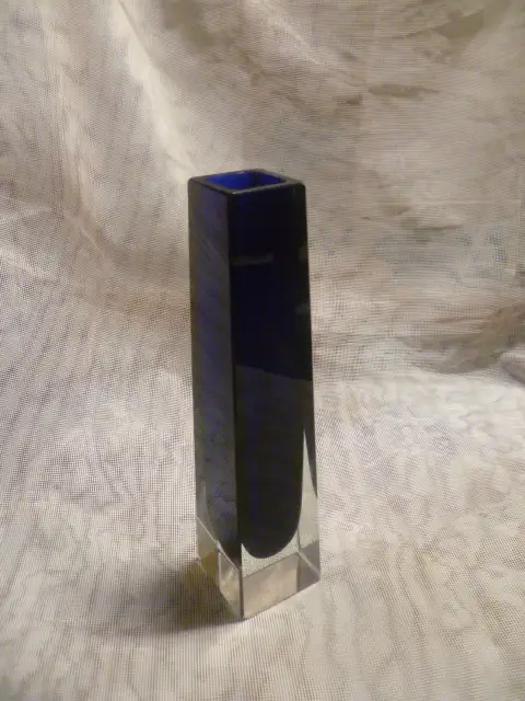 eine wunderschöne, alte Murano Sommerso Blockvase - Glas - Vase, in Stahlblau und Klar - Sammlerzustand - ohne Beschädigungen