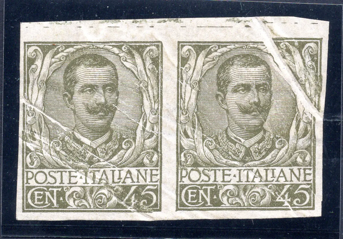* MH - Floreale Cent. 45 n. 75g ungezähntes Paar mit großer Papierfalte beim Drucken - Interessant für Emissionsspezialisten - Kat. 400++ n. 424/19