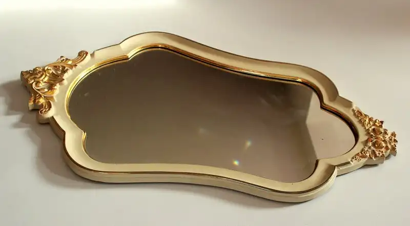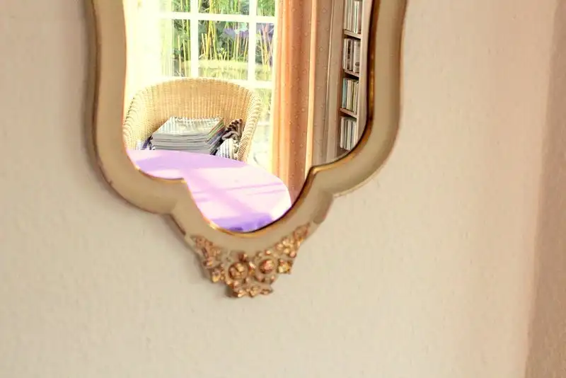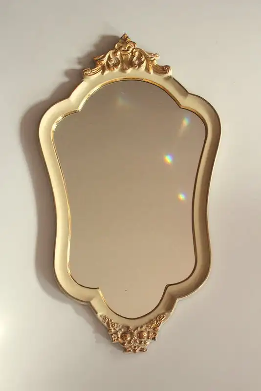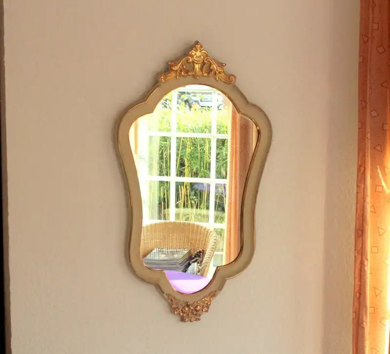 Wunderschöner Florentiner Wandspiegel - Garderobenspiegel groß - creme/weiß - beige mit goldfarbenen Akzenten - Vintage aus den 1970ern - Spiegelglas, Holz - toller Wandspiegel aus der Zeit - Vintage - mid century, sehr gut erhalten mit minimalen Gebrauchsspuren - beautifull florentine wall mirror - original from the 1970s - in good vintage condition with minimal traces of age and use - wall accents - living room art
