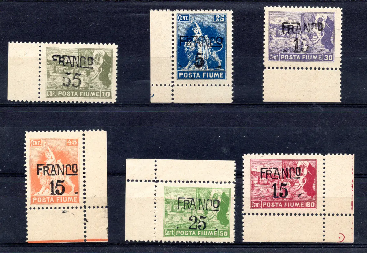 Fluss - Allegorie Posta Fiume überdruckt Franco Serie 6 Werte Vollgummi - Fluss - Allegorie Posta Fiume überdruckt Franco Nr. D75 // D87 komplette Serie 6 Werte - Selten - Kat. 137 n. 907/6