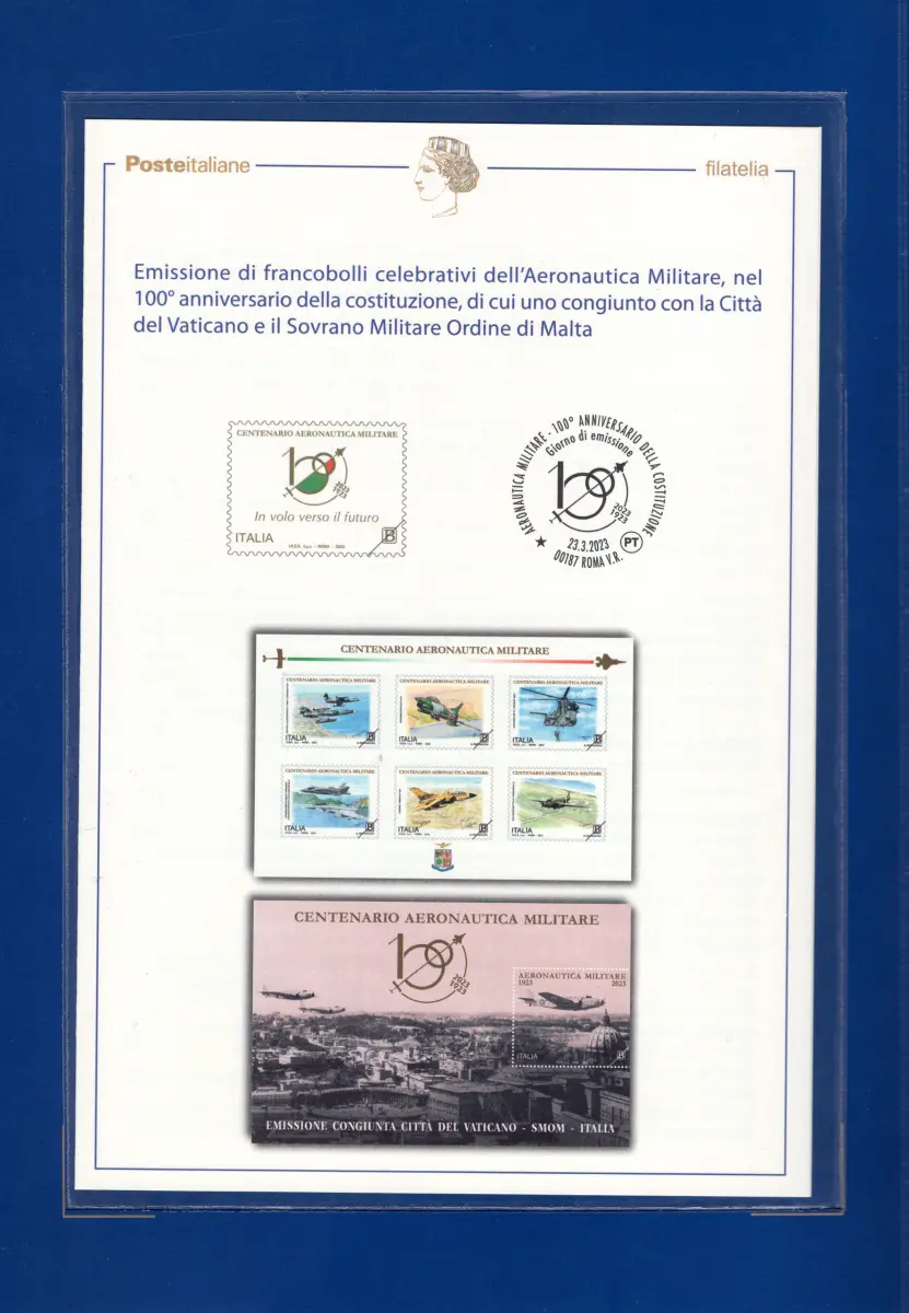 Der seltene Folder, der anlässlich des 100-jährigen Jubiläums der Luftwaffe herausgegeben wurde - enthält den Sechs-Werte-Bogen (Flugzeuge), den seltenen gemeinsam ausgegebenen Bogen (mit Vatikan und S.M.O.M.), die Hundertjahrfeier-Briefmarke aus Blättern und die 8 FDC-Umschläge - selten - MEHRFACHVERKAUF DIE BILDER KÖNNEN VOM VERSENDETEN FOLDER ABWEICHEN -