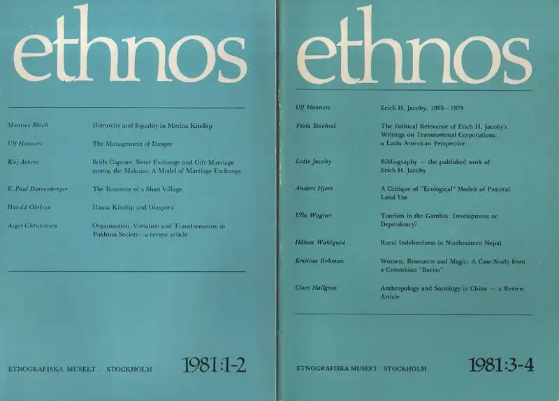 Titel: Ethnos. Journal of anthropology / National Museum of Ethnography, Stockholm. Jahrgang 1981: 1-2 + 3-4 (in 2 Bde.)