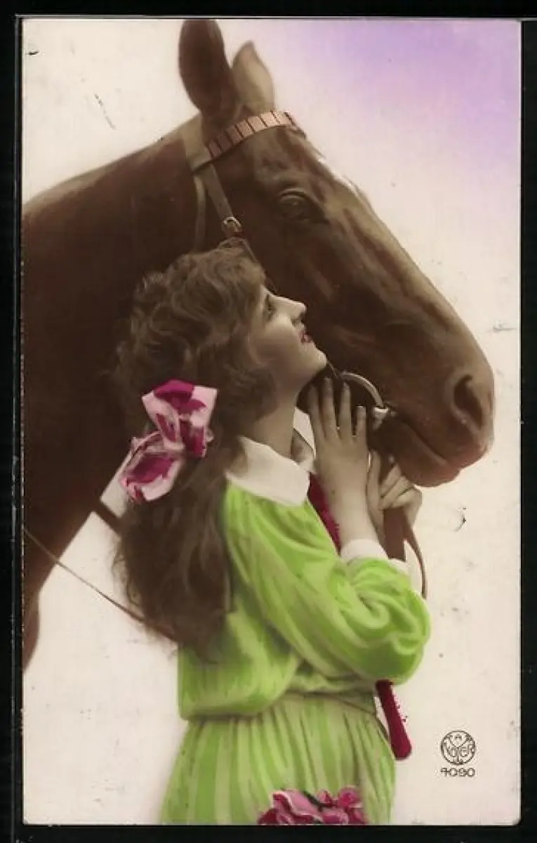 Foto-AK A. Noyer Nr. 4090: Mädchen mit Pferd