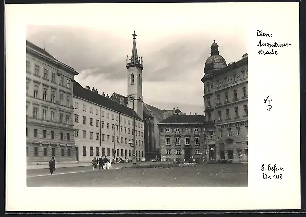 Foto-AK Adalbert Defner: Wien, Augustiner-Strasse mit Passanten