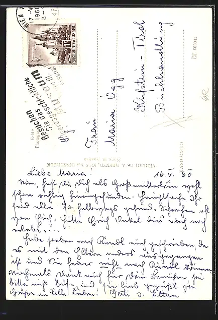 alte Ansichtskarte, gelaufen 1960, Eckknick re. oben, kleiner Einriss oben mittig, guter Zustand