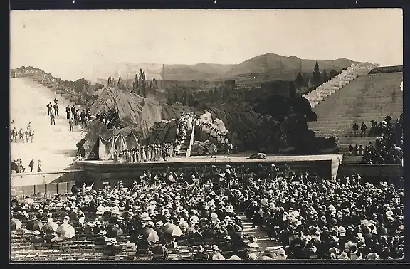 Foto-AK Arles, Représentation théâtrale dans l`amphithéâtre antique avec une foule de spectateurs