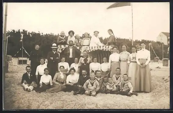 Foto-AK Brunshaupten /Mecklb., Gruppenbild am Strand