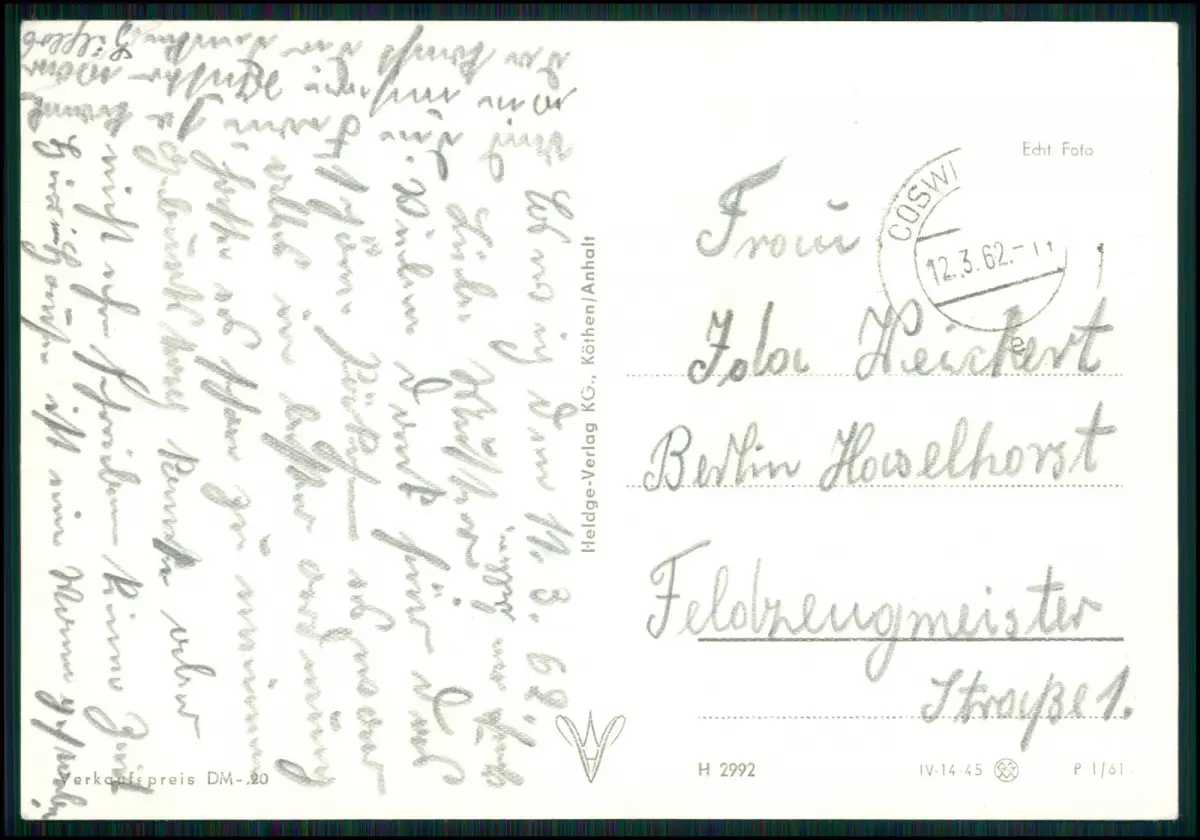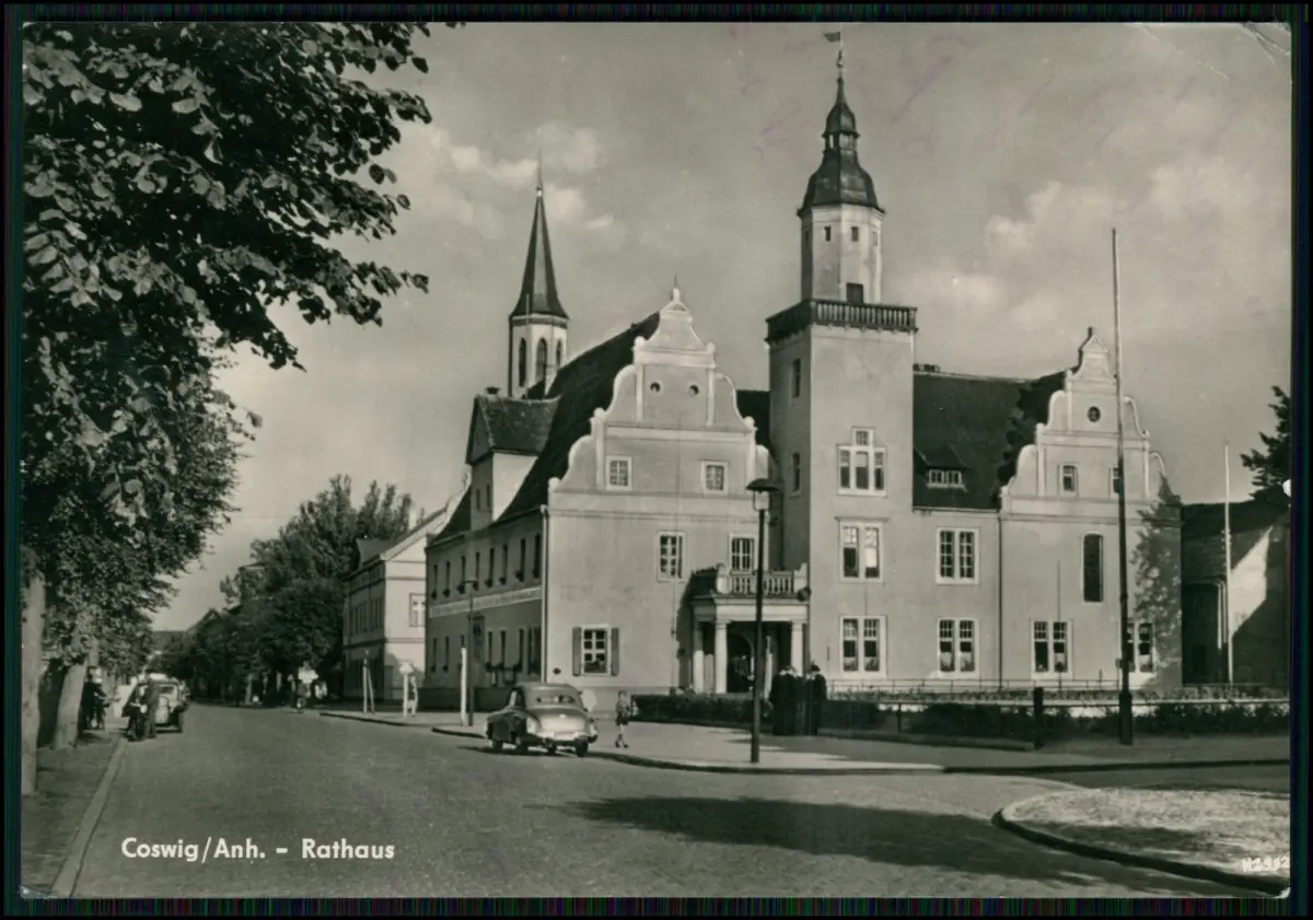 Foto AK - Coswig in Sachsen Anhalt - Straße mit Autos am Rathaus im Stadtzentrum