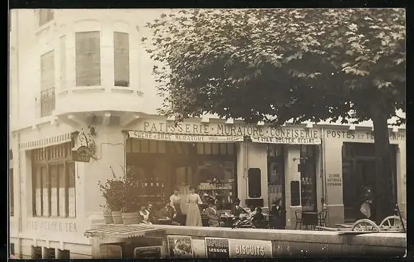 Foto-AK Evian-Les-Bains, Patisserie Muratore Confiserie, Postes et Telegraph