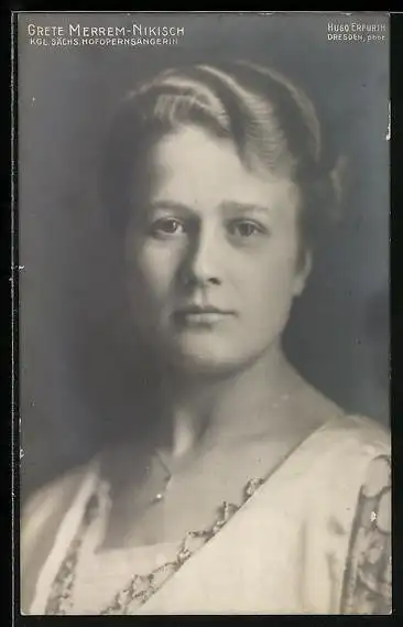 Foto-AK Hugo Erfurth: Kgl. sächs. Hofopernsängerin Grete Merrem-Nikisch im Porträt