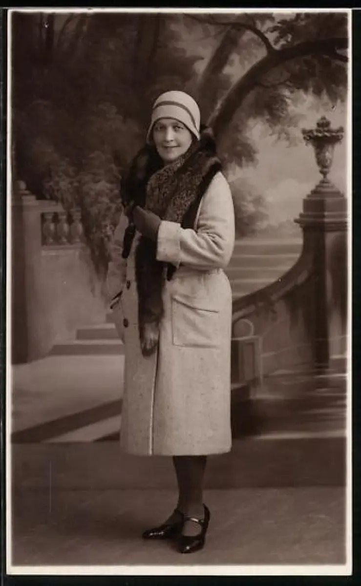 Foto-AK Junge Frau im Mantel mit Pelz