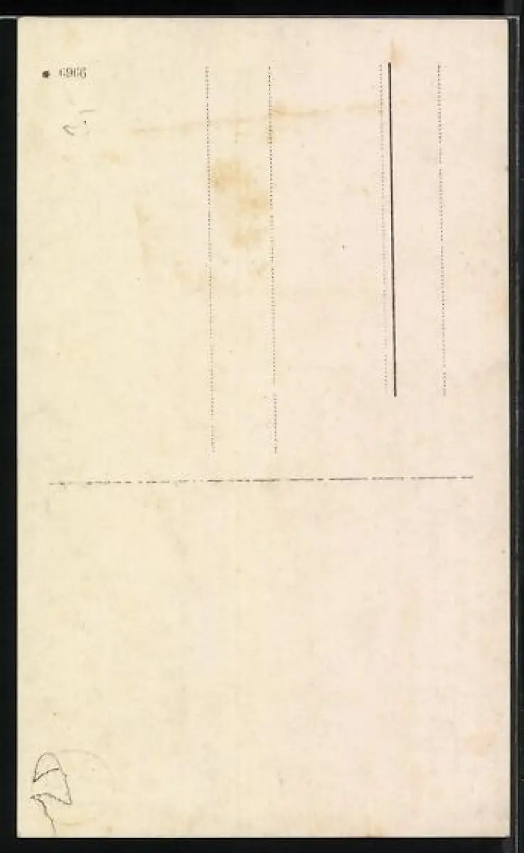 Personenbezogene Daten auf der Rückseite der Karte wurden durch blauen Textmarker unkenntlich gemacht. Die blauen Stellen sind auf die Vorderseite durchgeweicht und wirken sich negativ auf das Postkartenfoto aus
