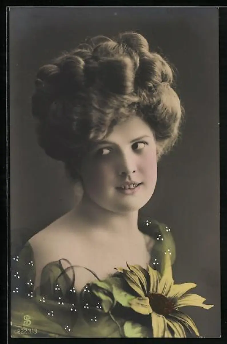 Foto-AK L.J. & F.F. Nr. 2223/3: Fräulein mit Sonnenblume