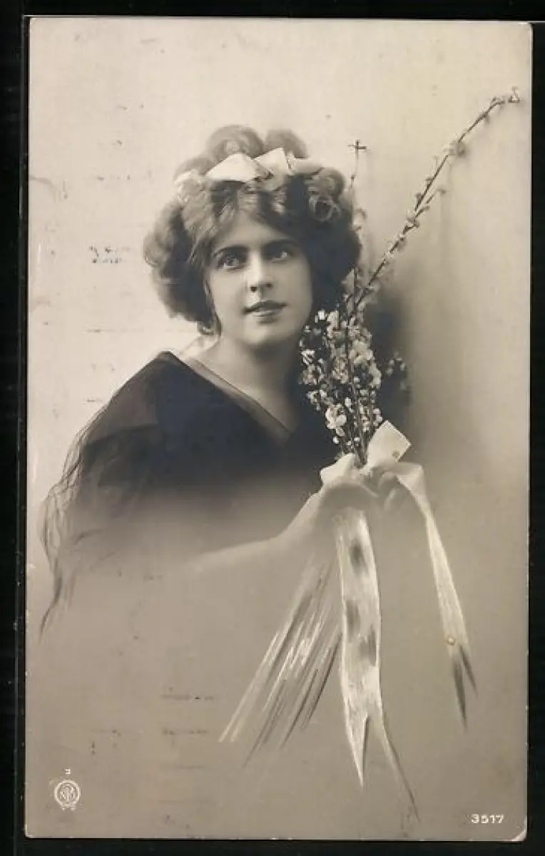 Foto-AK NPG Nr. 3517: Fräulen mit Blütenzweig