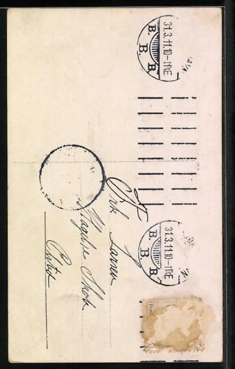 alte Ansichtskarte, gelaufen 1911, Briefmarke entfernt, rückseitig Oberflächenschaden, guter Zustand