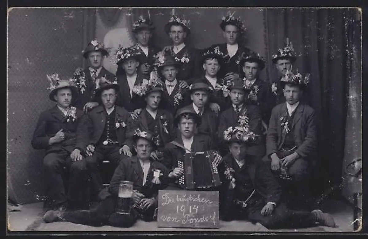 Foto-AK Pöndorf, Gruppenbild Taugliche 1914