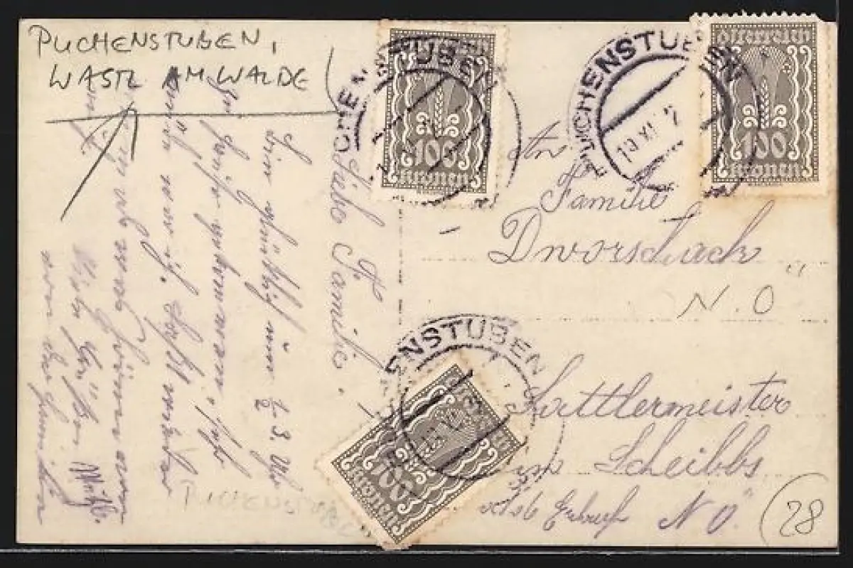 Foto-AK Puchenstuben, Wastl am Walde, Ortsansicht mit Umgebung
