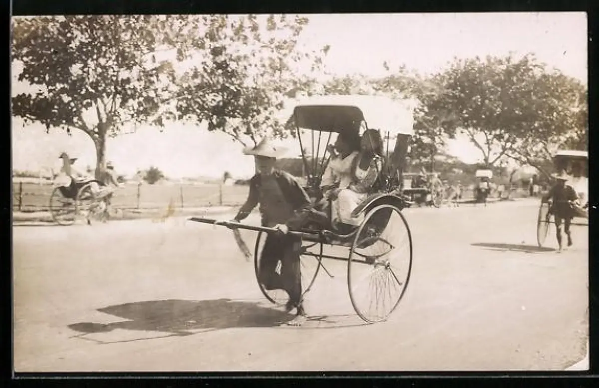 Foto-AK Rikschafahrer auf der Strasse