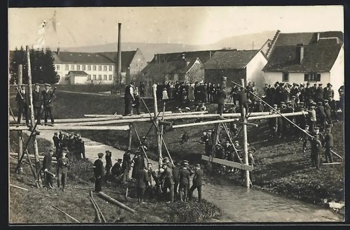 Foto-AK Tiengen / Waldshut, Soldaten beim Pionierbrückenbrau
