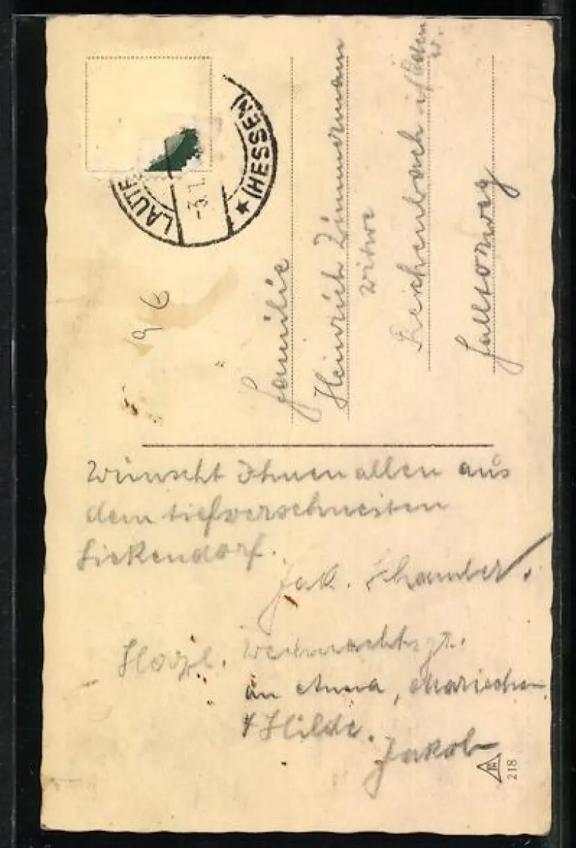 alte Ansichtskarte, gelaufen, Briefmarke entfernt, rückseitig Oberflächenschaden, guter Zustand