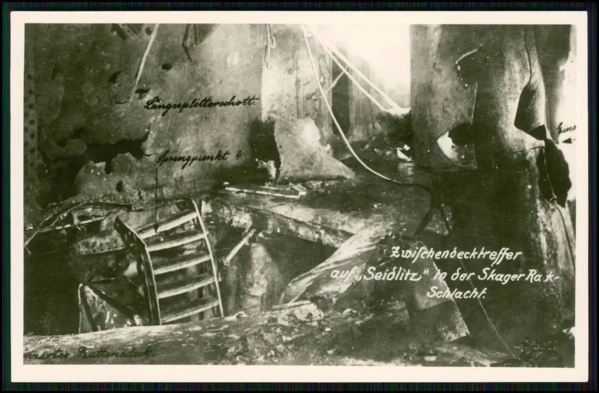 Foto AK - Zwischendecktreffer SMS Seydlitz - Skagerrak-Schlacht, schwere Schäden