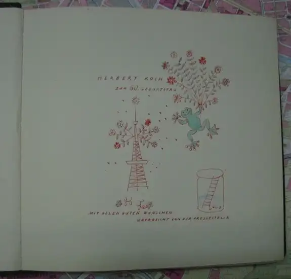 Fotoalbum. - SFB Sender Freies Berlin. - ARD. - Herbert Koch. - Konrad Adenauer. - Werner Dollinger. - Alfred Braun u. a: Herbert Koch zum 60. Geburtstag. Mit allen guten Wünschen überreicht von der Pressestelle. - Foto-Album. - zum Inhalt siehe Anmerkung