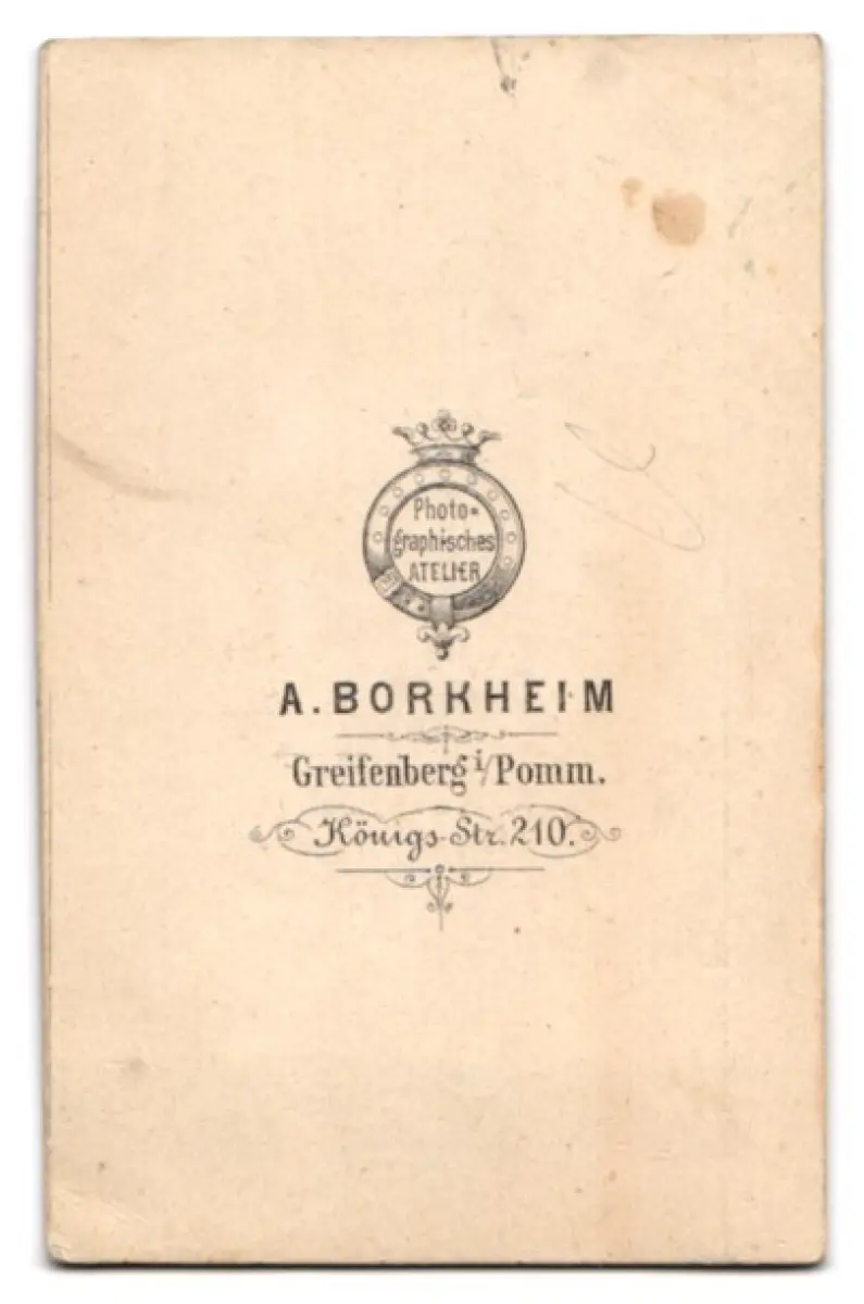Fotografie A. Borkheim, Greifenberg i./Pomm., Königs-Str. 210, Porträt eines jungen Mädchens mit Stuhl