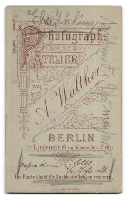 Fotografie A. Walther, Berlin, Lindenstr. 16, Kind mit Puppe