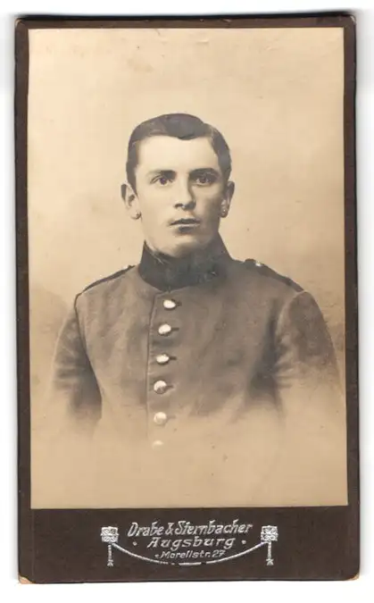 Fotografie Drabe & Sternbacher, Augsburg, Morellstr. 23, Porträt eines Soldaten in Uniform