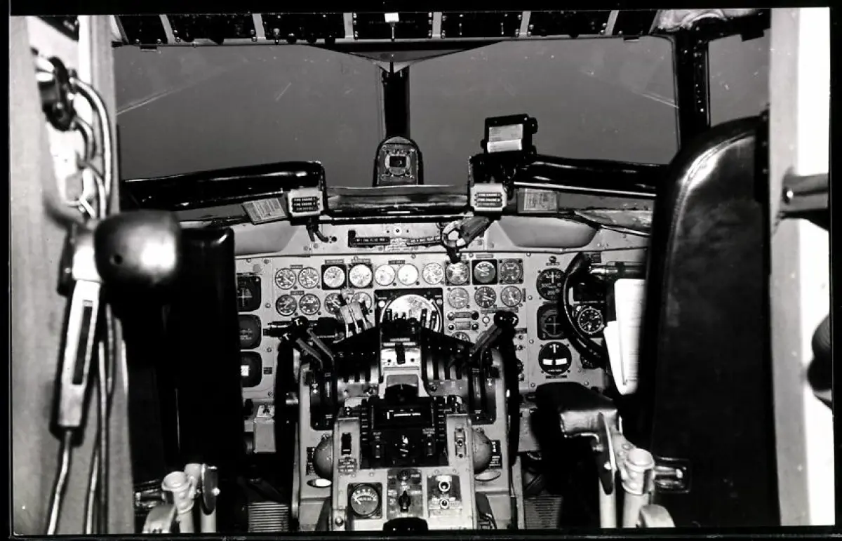 Fotografie Flugzeug Lockheed, Cockpit Innensicht mit vielen Instrumenten