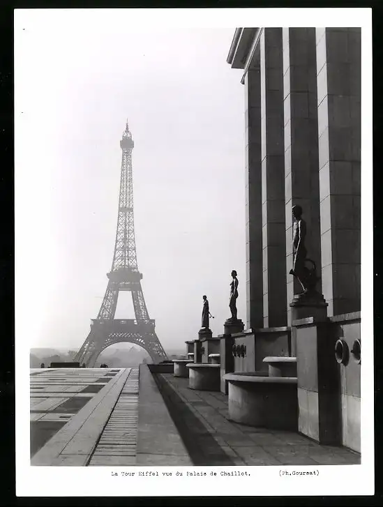 Fotografie Goursat, Ansicht Paris, La Tour Eiffel vue du Palais de Chaillot, Blick zum Eifelturm vom Chaillot-Palast