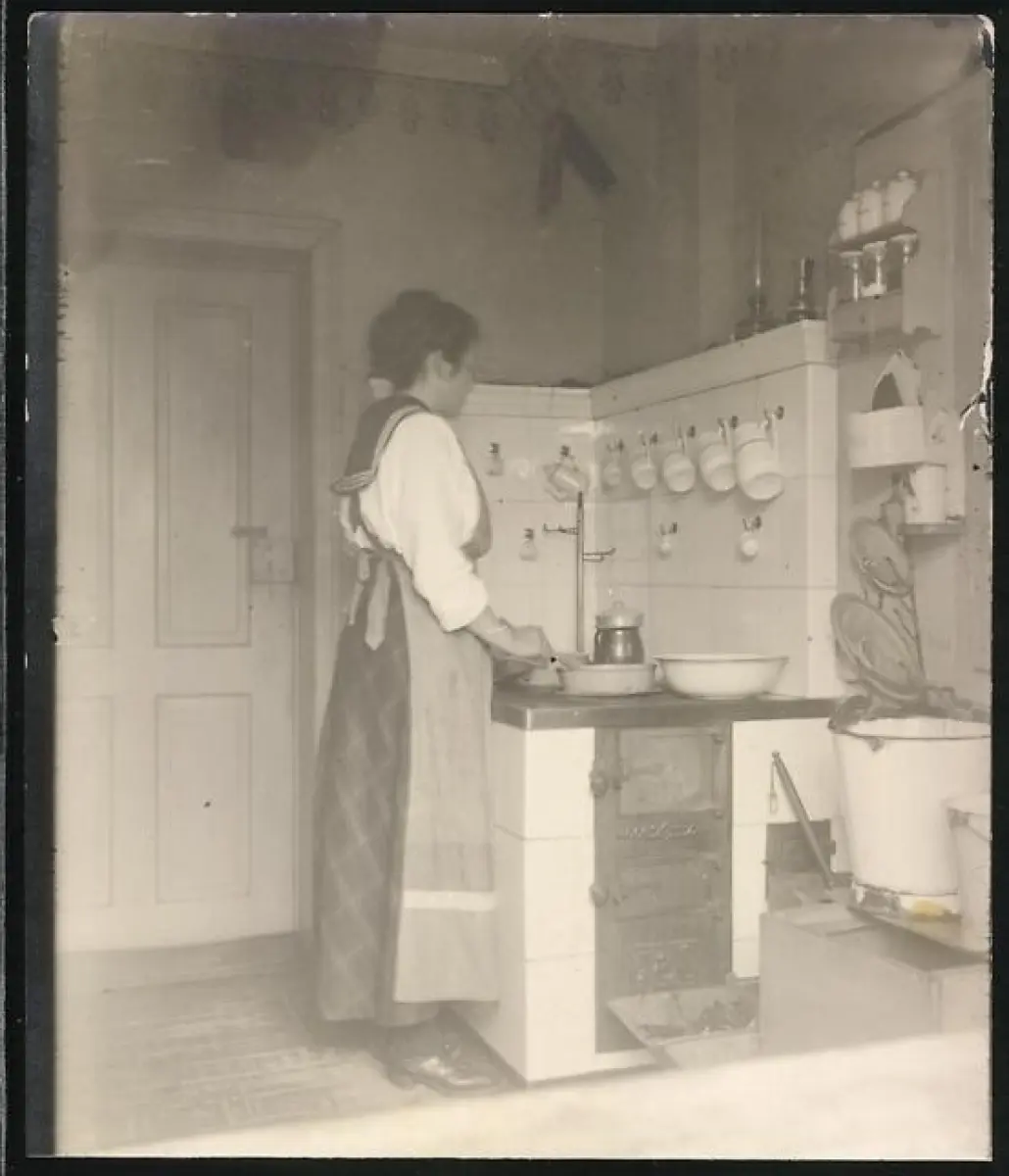 Fotografie Hausfrau am heimischen Herd beim Kochen