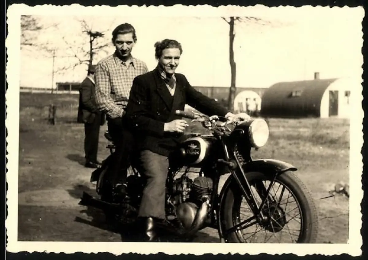 Fotografie Motorrad Phönix, Bursche und Knabe auf Krad sitzend