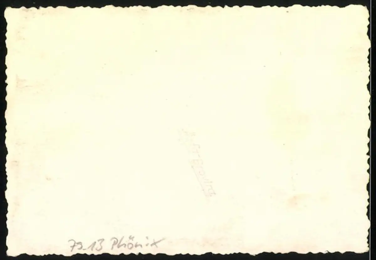 Personenbezogene Daten auf der Rückseite der Karte wurden durch blauen Textmarker unkenntlich gemacht. Die blauen Stellen sind auf die Vorderseite durchgeweicht und wirken sich negativ auf das Postkartenfoto aus