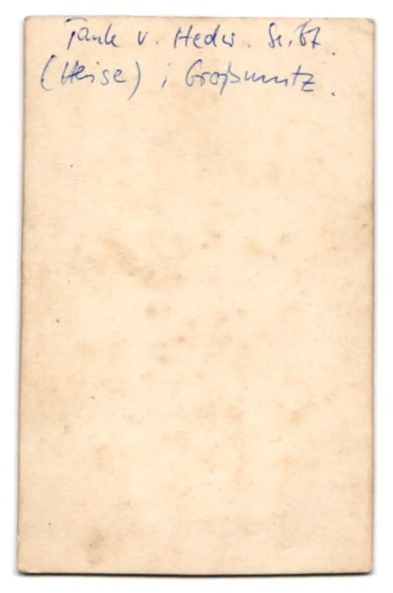 Personenbezogene Daten auf der Rückseite der Karte wurden durch blauen Textmarker unkenntlich gemacht. Die blauen Stellen sind auf die Vorderseite durchgeweicht und wirken sich negativ auf das Postkartenfoto aus