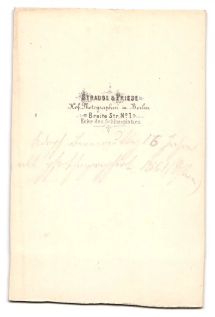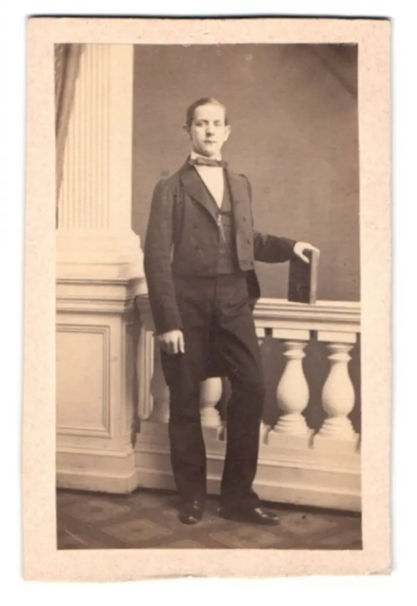 Fotografie Straube & Friese, Berlin, Portrait junger Mann Adolf Bernoully im Frack mit Fliege, 1861