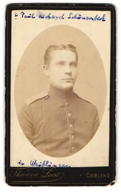 Fotografie Theodor Loos, Coblenz, Soldat Paul Richard Schönersteck in Uniform Rgt. 68