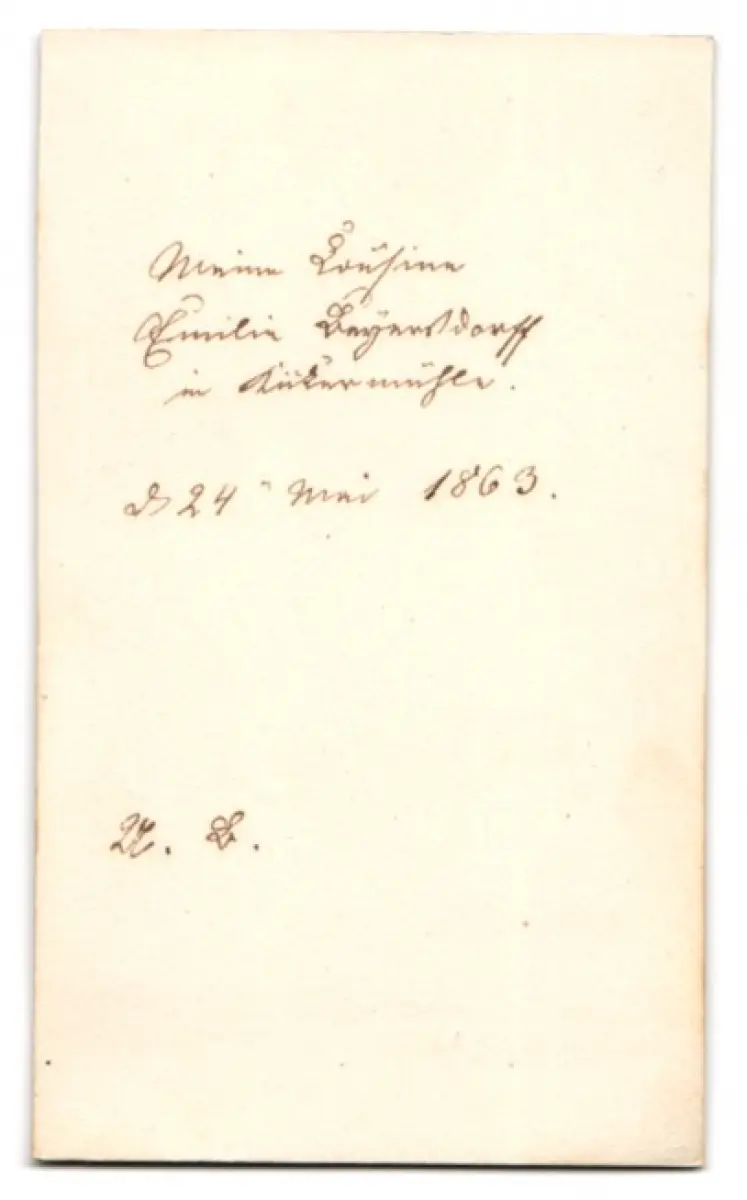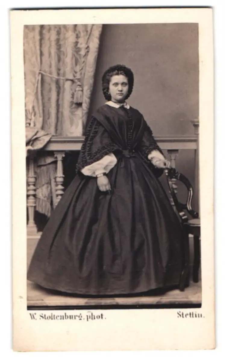 Fotografie W. Stoltenburg, Stettin, junge Frau Emilie Löwensdorff im dunklen Kleid, 1863