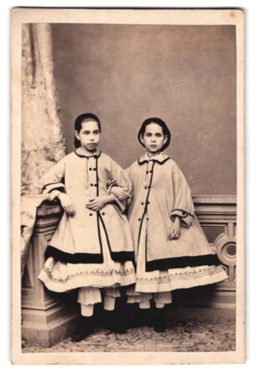Fotografie zwei niedliche kleine Mädchen in wiener Kleidern
