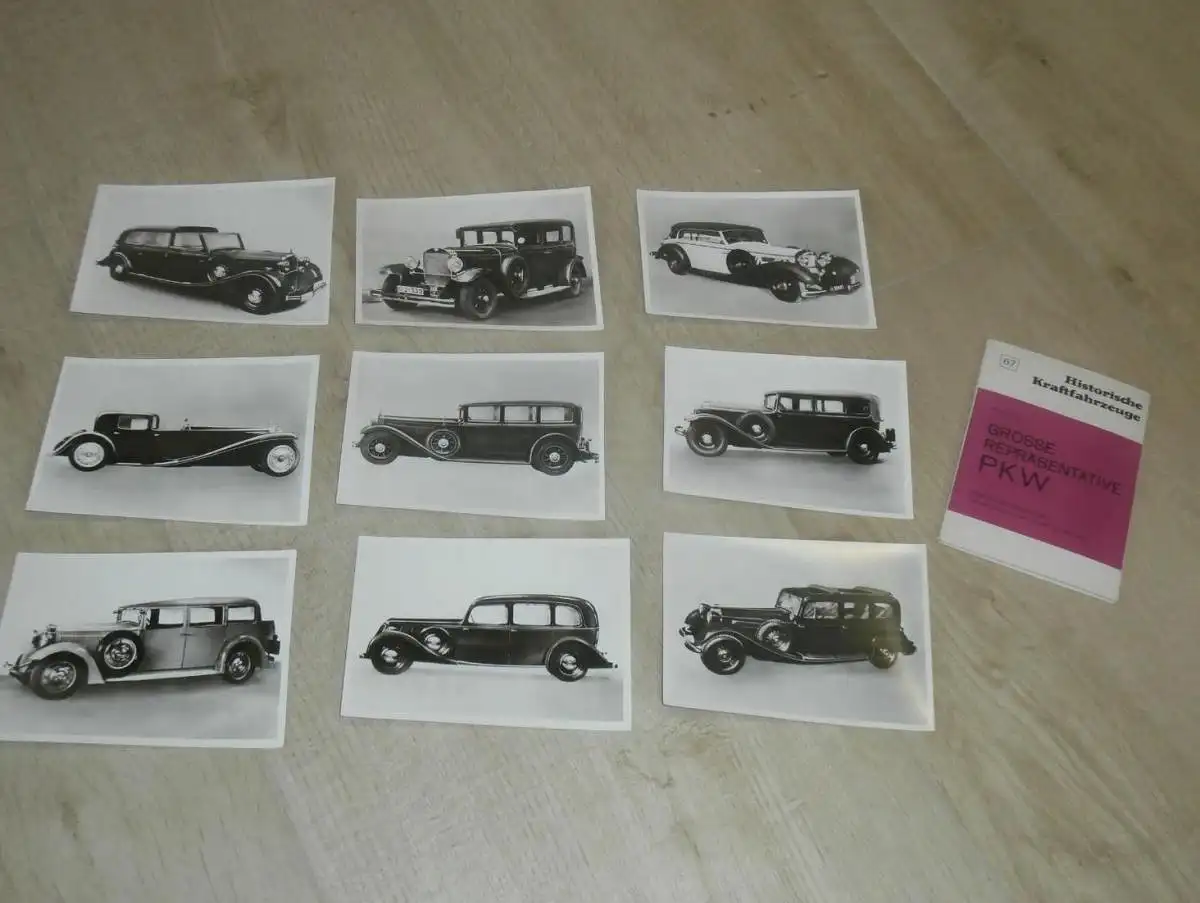 Fotokarten - Historische Fahrzeuge in Mappe - Oldtimer , Es sind folgende Autos: Horch 830 BI , NAG 218 , Mercedes Benz 540 K , Adler Standard 8 , Stoewer Arcona , Simson Supra A , Elite , Bugatti 41 La Royale , Maybach SW 42 !!!