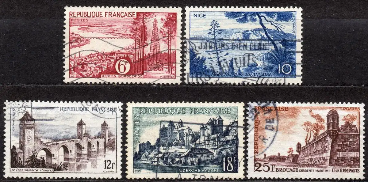 Frankreich, Mi-Nr. 1064, 1066, 1067, 1068 + 1070 gest., Landschaften