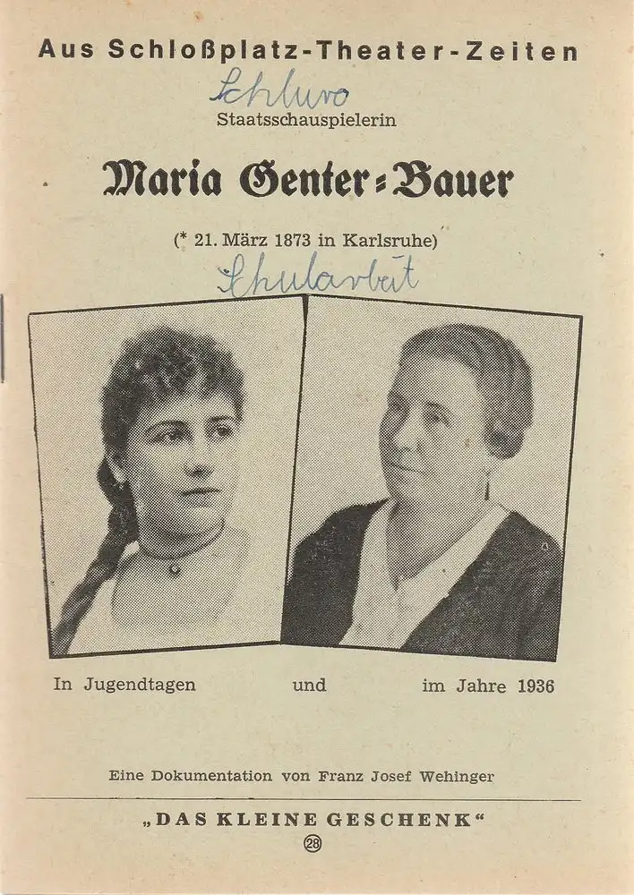 Franz Josef Wehinger: Aus Schloßplatz-Theater-Zeiten Staatsschauspielerin Maria Genter=Bauer.