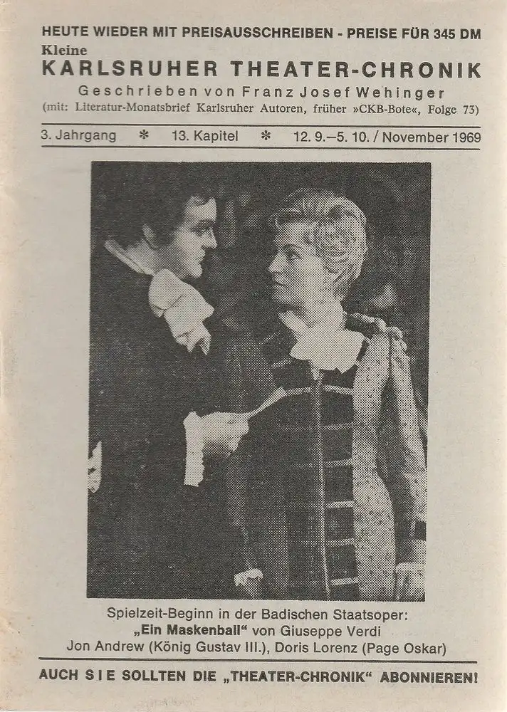 Franz Josef Wehinger: Kleine Karlsruher Theater-Chronik 3. Jahrgang 13. Kapitel 12. 9. - 5. 10. November 1969.