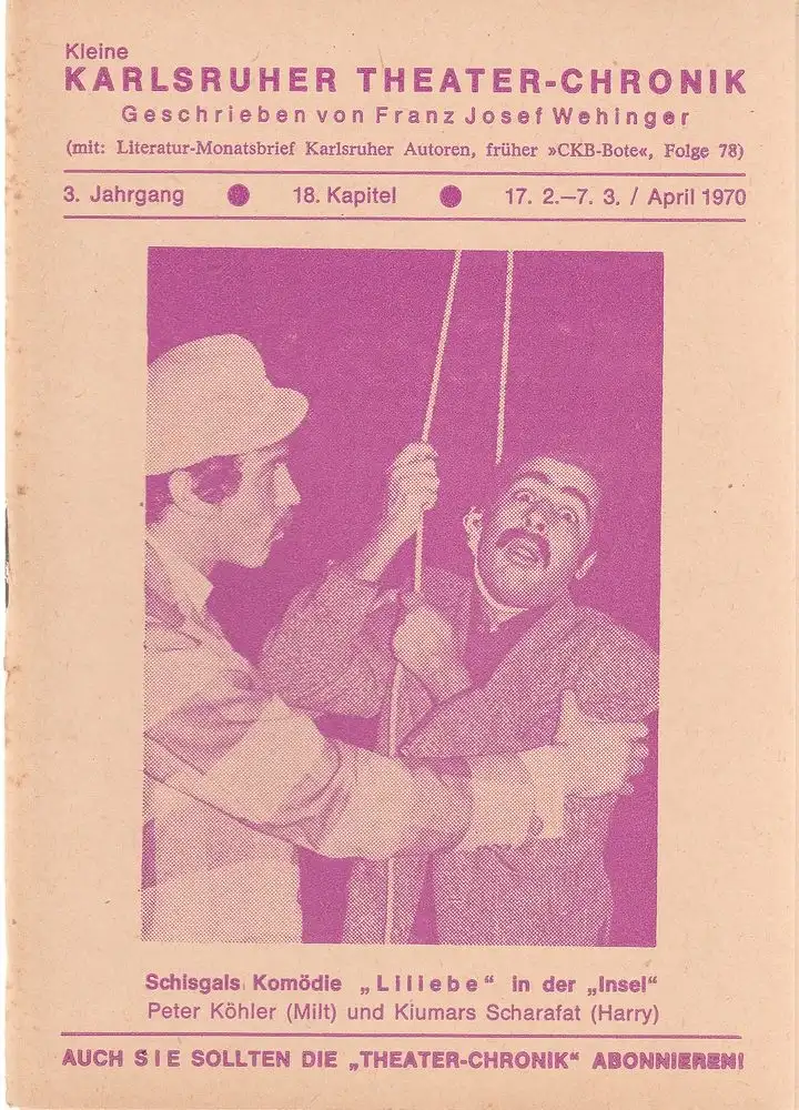 Franz Josef Wehinger: Kleine Karlsruher Theater-Chronik 3. Jahrgang 18. Kapitel 17. 2. - 7. 3. April 1970.