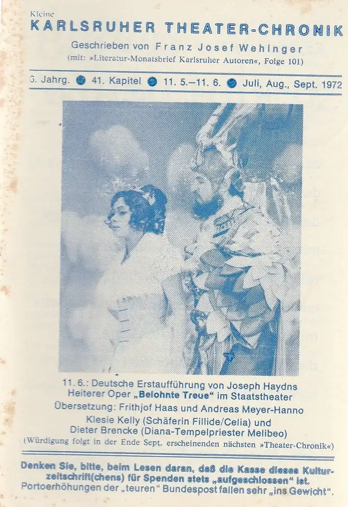 Titel: Kleine Karlsruher Theater-Chronik 6. Jahrgang 41. Kapitel 11. 5. - 11. 6. Juli August September 1972